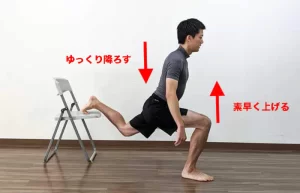 椅子を使った練習法を取り入れれば、安全にフォームを習得でき、膝や腰への負担も軽減できます。