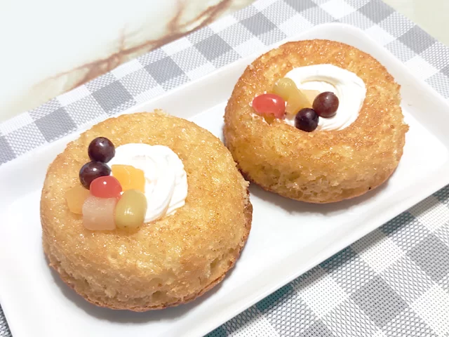 ベイクオフの番組で紹介されていたラム・ババを作ってみました。型のサイズが放映されていなかったので、エンゼル型の12cmで作ったら、ちょうどいいサイズに…。