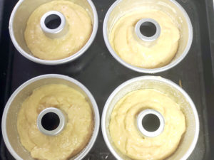 パンとケーキの中間の生地ですが、膨らみすぎると型から外しにくいので、生地を絞り入れるときには、入れ過ぎないように注意してください。