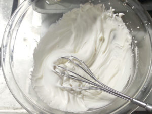![]() 17:生地にシロップをしみこませている間に、ホイップクリームを作りましょう。 18:ボールに生クリーム、グラニュー糖、レモン汁を入れて泡立て、絞れるくらいの硬めのクリームを作ります。 |